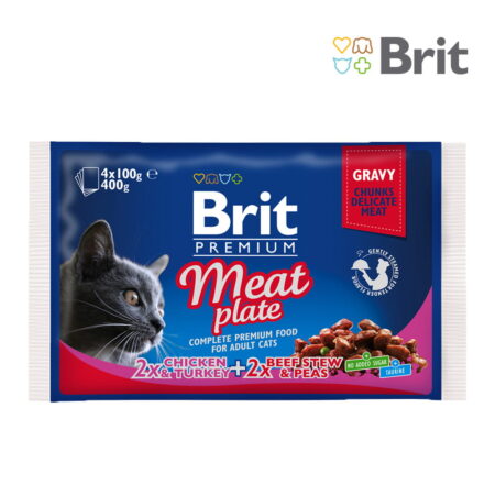 Brit Premium Cat Pouches Meat Plate Gravy Chunks Delicate Meat 100g x 4pcs